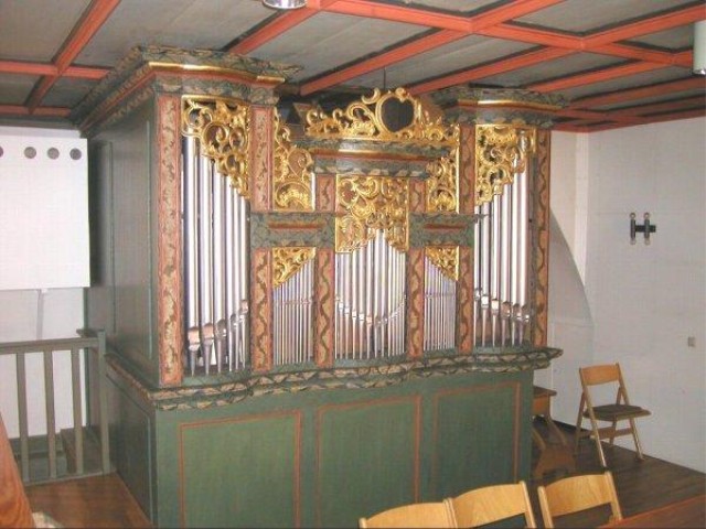 "Zu Ehre des Dreieinigen Gottes, und Verbesserung des Kirchengesangs ist gegenwärtiges Orgelwerk auf Kosten der von ao 1762-1770 lebenden gesamten Bürgerschaft und des ... aufgerichtet und bemalet worden. Alles was Odem hat lobe den Herrn".