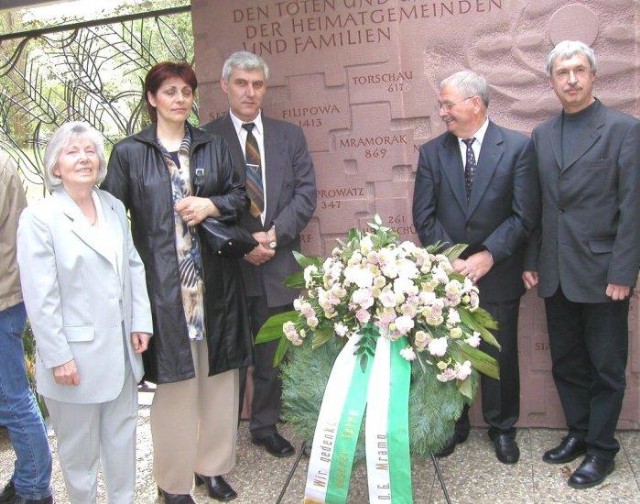 Im Lichthof im Haus der Donauschwaben in Sindelfingen - bei der Gedenkfeier der Mramoraker - vor der Wand der vielen Ortschaftsnamen.